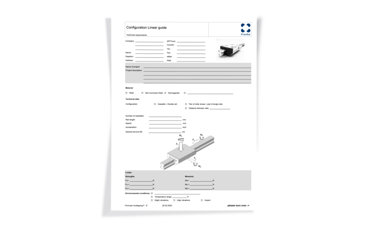 Bienvenido al kit de herramientas para ingenieros de Franke, donde encontrará toda la información y documentación necesarias sobre la tecnología lineal y de rodamientos de alambres de Franke.