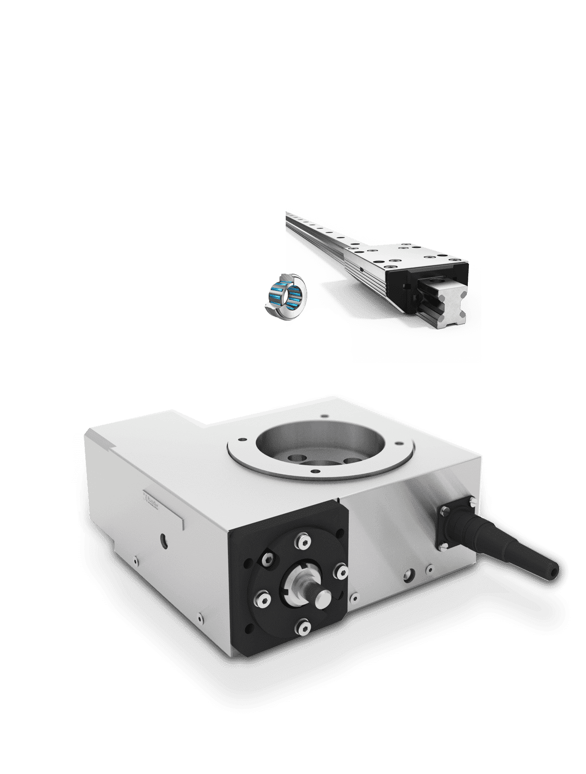 Como sistema completo, la mesa giratoria permite una integración sencilla en la construcción de conexión. Debido a la alta rigidez, se puede garantizar una transferencia precisa de los productos. La carcasa de aluminio anodizado es anticorrosiva.