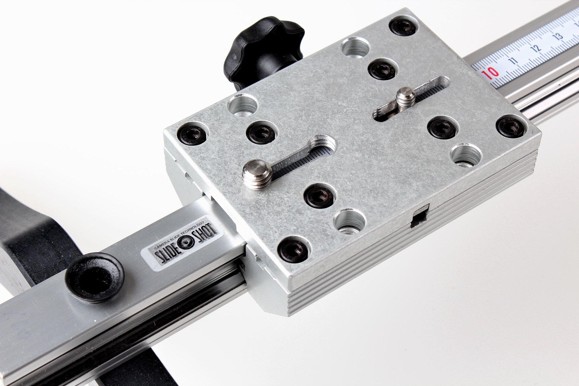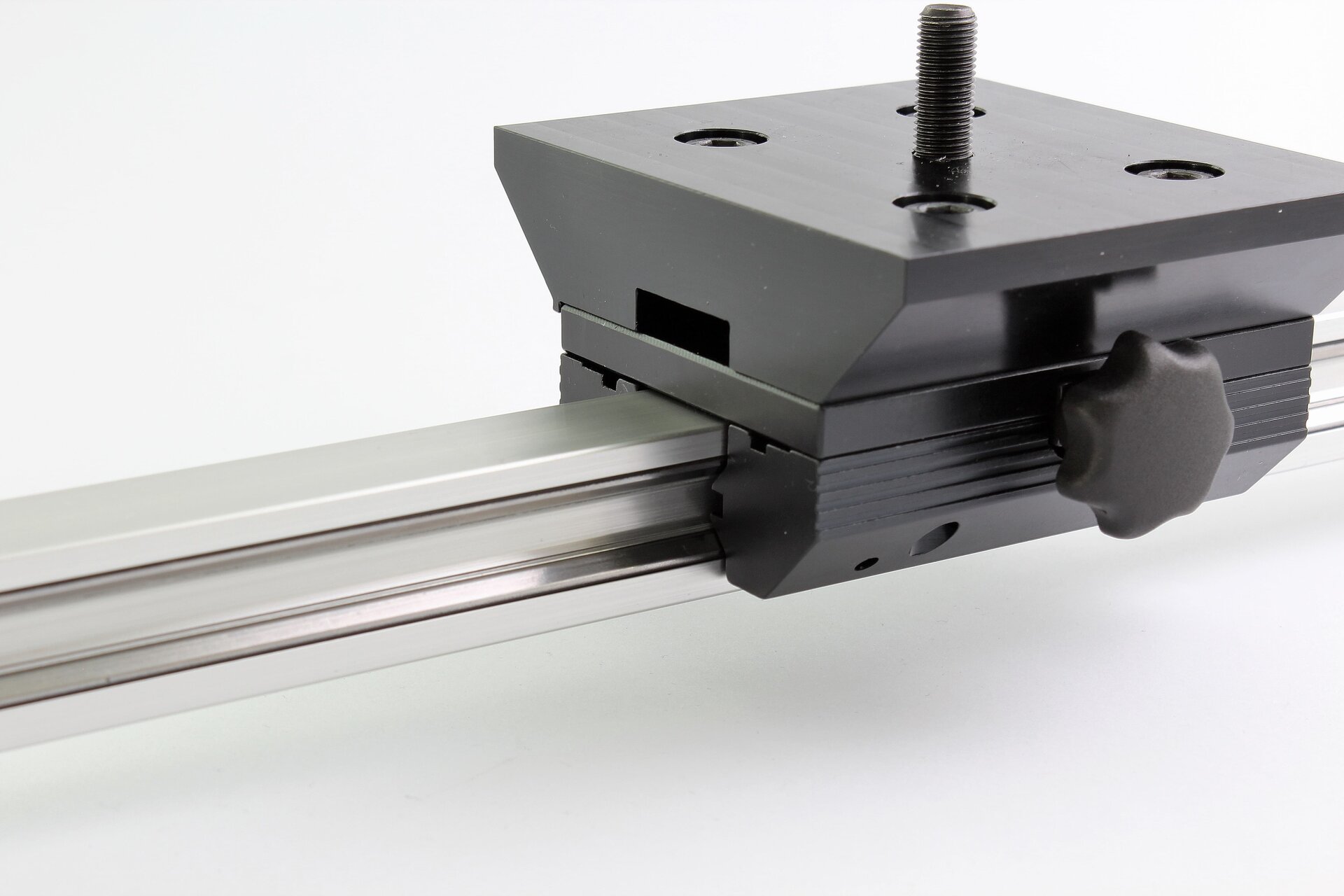 Carro especial como deslizador de cámara con rosca de conexión para cabezales de trípode.